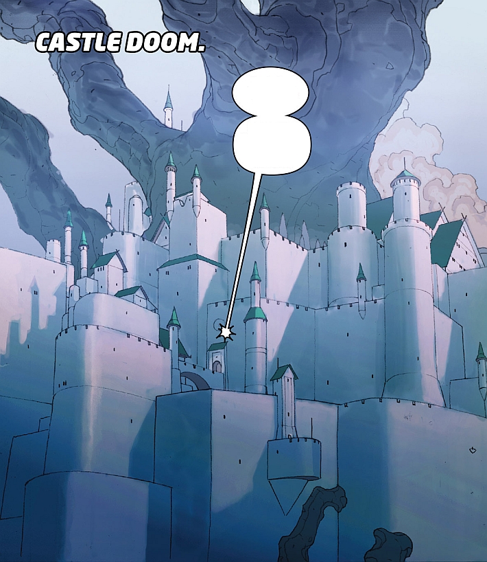 Siedziba Dooma położona jest na gruncie, z którego wyrasta Drzewo Życia – Yggdrasil, zaadaptowane jako tron dla boga Battleworldu. We wnętrzu zamku znajduje się posąg uchodzącego za zbawiciela Molecule Mana. Drugi pomnik upamiętniający tego bohatera, który jak głosi legenda umarł za grzechy ludu Battleworldu, postawiono w prywatnych ogrodach Dooma. Pod ogrodową statuą Molecule Mana ukryta jest zapadnia, która prowadzi do zalanego światłem pomieszczenia. W tym azylu, w tajemnicy przed całym światem, rezyduje Molecule Man będący źródłem mocy Dooma. O jego istnieniu wiedzą tylko twórca Battleworldu i Szeryf Strange.