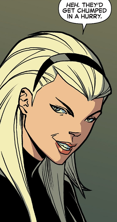 Reprezentantka Warriors of the Great Web, rozbitek z Earth-65. Po upadku multiwersum wylądowała w Arachnii. Chcąc odkryć prawdę o śmierci lokalnej Gwen, rozpoczęła pracę w Ozcorp pod fałszywym nazwiskiem „Woodley”. Tam poznała Spider-Hama i wspólnie z nim dołączyła do Web Warriors. Jako jedyna od początku nie ufała Normanowi Osbornowi. Prowadząc na własną rękę śledztwo, spotkała miejscowego emerytowanego Spider-Mana, którego ocaliła przed Venomem. Po obaleniu barona pozostała w grupie, która odtąd miała strzec Arachnii.