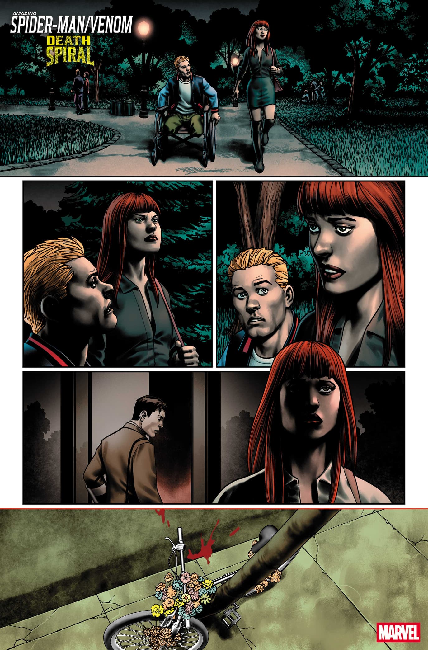 Wydawnictwo Marvel Comics udostępniło w sieci przykładowe strony z Amazing Spider-Man/Venom: Death Spiral, komiksu otwierającego crossover Death Spiral, w którym Spider-Man (Peter Parker), Venom (Mary Jane Watson) i Carnage (Eddie Brock) zmierzą się z seryjnym zabójcą o pseudonimie Torment.