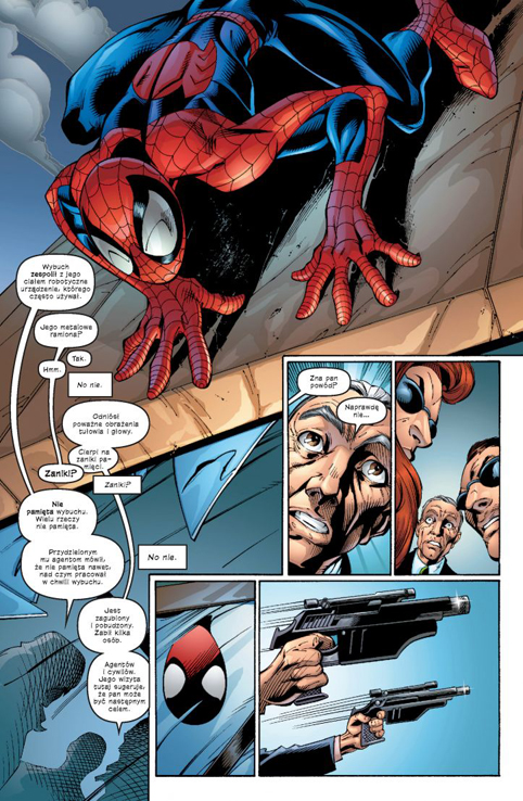 Treść całego tomu można podzielić na dwie części, gdzie w pierwszej Spider-Man walczy z Octopusem i Kravenem Łowcą, a w drugiej akcja niesamowicie przyspiesza i nasz czas spędzamy z Osbornem, który powrócił i ma wielkie plany. Przyznam, że przez drugą połowę przemknąłem w niesamowitym tempie. Akcja, akcja i jeszcze raz akcja – to najlepiej oddaje pęd fabuły. Wszystko dobrze trzyma się kupy i widzimy, że Pająk jest częścią szerszego uniwersum. Świetnie przedstawiona, odnowiona wersja Octopusa i uwspółcześniona Kravena fantastycznie wpasowują się w świat Ultimate. Bendis robi świetną robotę.