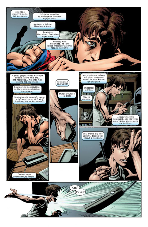 Pierwsza połowa tomu skupia się na relacjach Petera z Mary Jane oraz Gwen Stacy. Dostajemy również interpretację w wersji Ultimate słynnego komiksu The Amazing Spider-Man #90, gdzie George Stacy ginie równie heroicznie jak w oryginale. Trzeba to przyznać Bendisowi, że klasyczne historie na łamach tej serii świetnie unowocześnia i nieznacznie zmienia, zachowując to co najważniejsze.