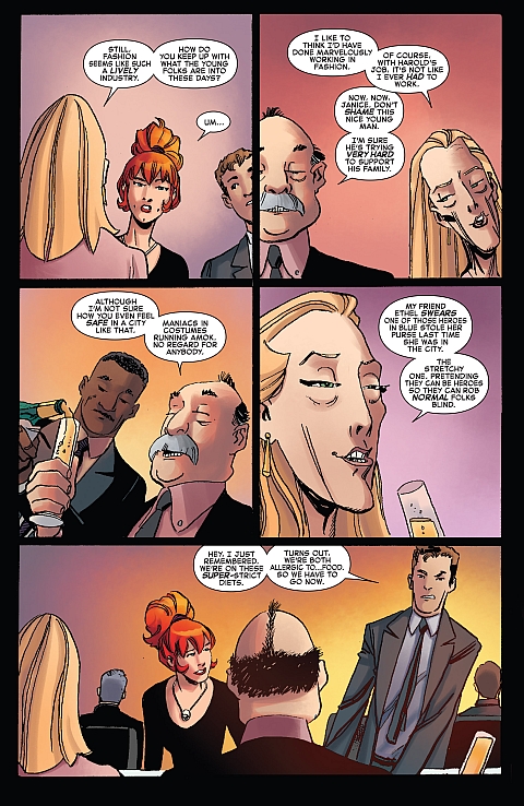 Mary Jane cieszy się, że spędzi z mężem urlop na wodach, gdzie superbohaterowie mogą sobie zrobić naprawdę wolne. Już pierwszego dnia Parkerowie poznają Harolda i Janice, starsze małżeństwo zamożnych snobów, którzy krytykują wszystkich superherosów, oskarżając ich o zło całego świata. Rozdrażniony tym malkontenctwem Peter pod pretekstem rezygnuje z dalszej kolacji w ich towarzystwie.