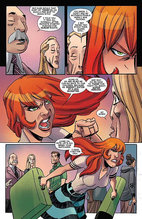 Później. Po przerwanym rejsie Peter i Mary Jane czekają na lotnisku w kolejce do odprawy. Słysząc kalumnie niewdzięcznych Harolda i Janice, którzy znów winią za wszystko superbohaterów, Mary Jane nie wytrzymuje i rzuca im w twarz, co myśli. Kobieta zabiera bagaże, mówiąc mężowi, że ma lepszy pomysł na podróż. Resztę wolnego tygodnia małżonkowie spędzają, podróżując samochodem. W czasie jazdy dochodzą do wniosku, że życie towarzyskie też do łatwych nie należy.