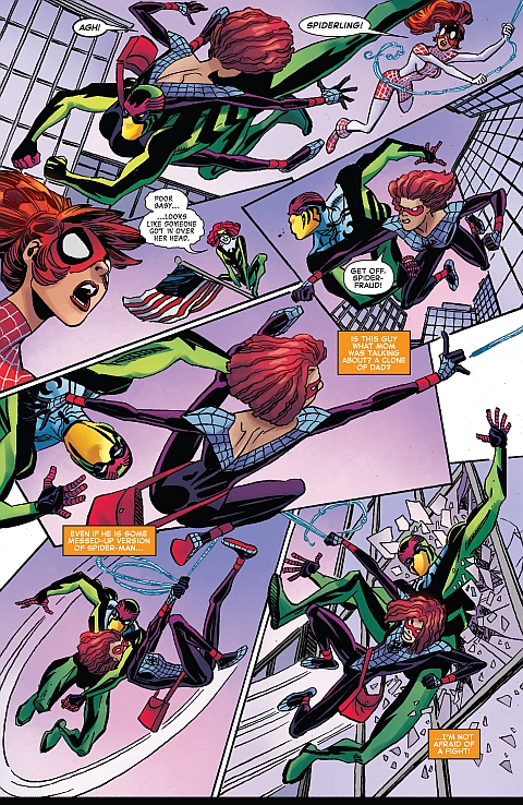 Cmentarz. Mary Jane i Annie składają kwiaty na grobie Bena Reilly’ego, klona Petera. Matka opowiada córce o dawnej intrydze Normana Osborna, w wyniku której Peter uwierzył, że jest klonem, który skradł życie Benowi. Po raz pierwszy zwierza się nastolatce, że była wtedy w ciąży i wskutek tych wydarzeń stracili dziecko – jej starszą siostrę – oraz Bena, który zginął jak bohater. Tłumaczy, że muszą pomóc klonowi Annie, który może być niestabilny emocjonalnie i poddawany manipulacji.
