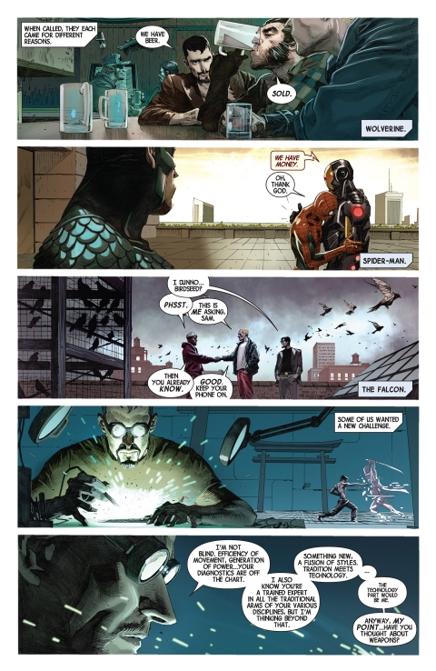 Ziemia, wieża Avengers. Falcon potwierdza, że obecne ataki przypominają te wcześniejsze – z Kanady i Australli. Na widok potworności dziejących się w Japonii, Indiach, Savage Land, Chorwacji, Norwegii i innych miejscach Kapitan Ameryka postanawia natychmiast zareagować, mimo obaw Wolverine’a co do gotowości drużyny. Rogers prosi Manifolda, by użył swoich mocy i przetransportował ich w tej chwili na Marsa. Drużyna znika i ląduje na czerwonej planecie.