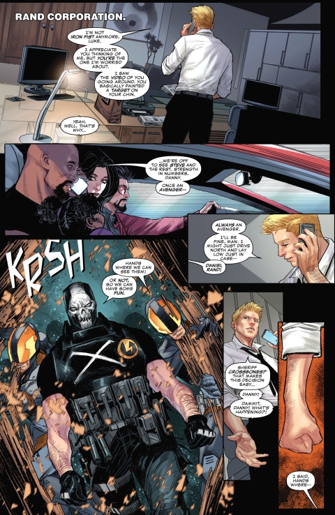 Luke Cage dzwoni do Danny’ego Randa i próbuje namówić go, by dołączył do podziemnego ruchu oporu przeciwko Fiskowi. Kiedy ten mówi, że nie jest już Iron Fistem, zostaje zaatakowany w swojej firmie Rand Corporation przez Crossbonesa i armię agentów Thunderbolts. Tony Stark zawozi samochodem Luke’a, Jessicę i ich córkę Dani na spotkanie z Kapitanem Ameryką i pozostałymi superbohaterami.