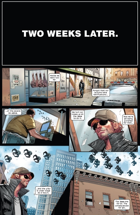 Dwa tygodnie później. Matt Murdock spaceruje po mieście, rozmyślając nad tym, że metropolia jest cały czas obserwowana – zarówno przez ludzi burmistrza Fiska, czyli Thunderbolts, jak i drony Doktora Octopusa. Mimo tego Daredevil przygotowuje się do kolejnego starcia. W tym czasie Otto wraz z Superior Wolverinem odwiedza Fiska w jego biurze. Octopus paraliżuje jego ochroniarzy, a następnie oferuje traktowanemu jak marionetka burmistrzowi „współpracę”, powołując się na technologię multiwersum Reeda Richardsa. Otto zdradza również, że syn włodarza, Butch Pharris, trafił do aresztu.