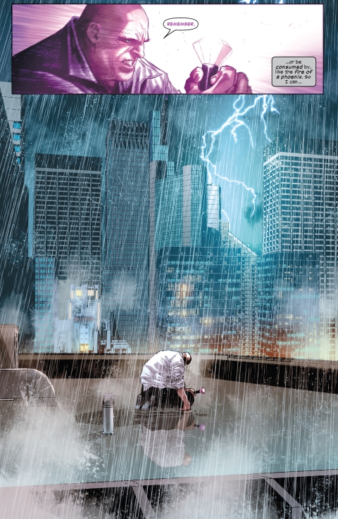 New York City Hall. Przygnębiony Fisk siedzi przy kominku. Mary stara się go pocieszyć, ale jego niepokój narasta, zwłaszcza gdy laska przepełniona mocą Purple Mana za sprawą wypowiedzianych przez niego słów przywraca jego żonie wspomnienia ich pierwszego razu, które wcześniej zostały wymazane. Fisk wybiega na dach. W deszczu, pod wpływem laski, odzyskuje wiedzę o tym, kim naprawdę jest Daredevil.