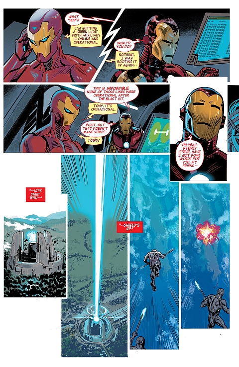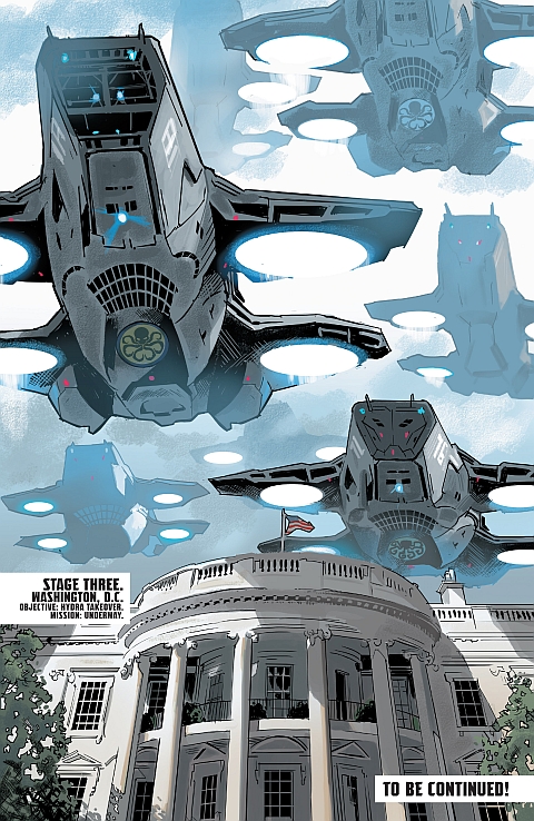 Po przemówieniu Rogersa ku zaskoczeniu Iron Manów generator włącza się i otacza całą planetę ochronnym polem, w które masowo uderzają najeźdźcy, ginąc na miejscu. Na nowojorski front docierają zaś posiłki (Rogue i jej drużyna Avengers Unity Division), a super-złoczyńcy zaczynają się teleportować. Tymczasem w zmierzający w stronę Sokovii statek Iliad, którego uzbrojenie nagle przestaje działać, wbija się Crescent. Z odnalezionego okrętu wysypują się żołnierze Hydry, przeprowadzając błyskawiczny abordaż. Terroryści zajmują Iliad bez żadnego zbrojnego oporu, ponieważ odtwarzany w tle głos Doktora Faustusa sprawia, że agenci S.H.I.E.L.D. stają się posłuszni jak baranki. Po tym, jak napastnicy wdzierają się na mostek, Cap ku przerażeniu Sharon ujawnia się jako Najwyższy Lider Hydry i każe aresztować ukochaną, kategorycznie zabraniając ją skrzywdzić.
