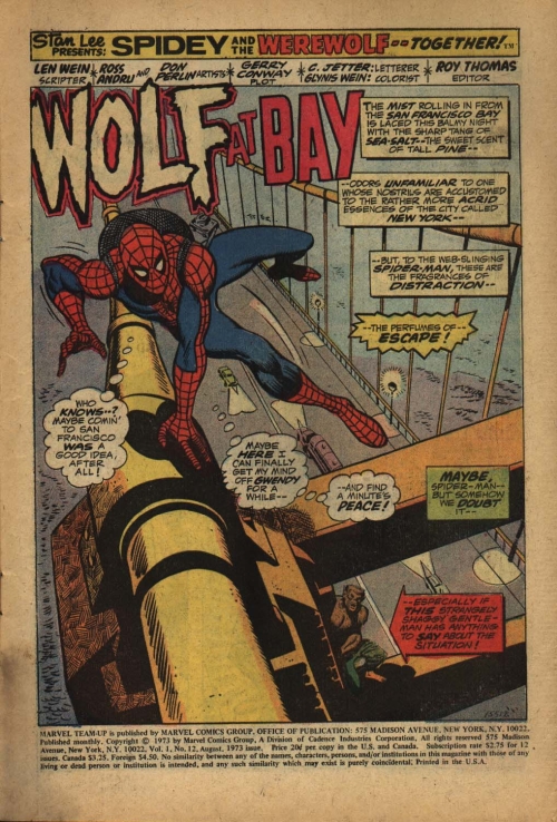 Spider-Man przybywa do San Fransisco, próbując zapomnieć o śmierci Gwen Stacy. Okazuje się, że za Parkerem podąża Werewolf (Jack Russell). Poruszając się po jednym z mostów (Golden Gate Bridge), włącza się jego pajęczy zmysł, który ostrzega go przed atakiem przypominającego zwierzę osobnika. W tym momencie Peter przypomina sobie, jak odwiedził Jamesona w Daily Bugle, aby prosić go o zadanie gdzieś poza Nowym Yorkiem. Jameson nie chciał ufundować darmowej wycieczki Parkerowi, ale wówczas wszedł do biura Robertson, który powiedział o Daredevilu i Black Widow, których sfotografować może tylko Peter.