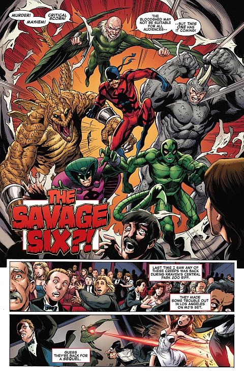 Na dachu pobliskiego budynku Savage Six (Vulture, King Cobra, Rhino, Scorpion, Stegron, Tarantula) przygotowują się do ataku na kino. Kierowana przez Adriana Toomesa grupa superłotrów zamierza zrujnować premierę filmu, aby zemścić się na Mysterio. Tymczasem ukrywający się na cmentarzu Kindred szykuje się na ostatnie spotkanie ze Spider-Manem, zapowiadając, że Peter pozna odpowiedzi na wszystkie pytania, przypomni sobie wszystkie swoje grzechy i doświadczy takiego bólu jak w piekle.