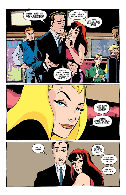 Loeb również ma u mnie plusa za to, że nie stawia głównie na akcję, która stanowi jakby tylko dodatek (całkiem niezły zresztą) do historii wkraczania Petera w poważną dorosłość. Chyba każde z was zauważyło, że problem pokonania przeciwnika zajmuje mniej niż pół numeru (no, może oprócz zeszytu pierwszego).