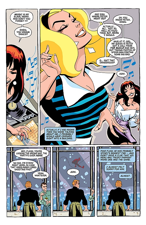 Peter wraz ciotką udają się w odwiedziny do Watsonów. Młody Parker zaczyna rozmowę z MJ, gdy pod jej dom podjeżdża Harry Osborn i zabiera dziewczynę na randkę. Peter zdąża już tylko przyjąć propozycję wspólnego mieszkania i może tylko wzrokiem odprowadzać odjeżdżających przyjaciół.