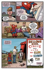 Spider-Ham przypomina sobie, jak obudził się w Arachnii, obcym świecie zdominowanym przez ludzi. Bezdomny pomieszkiwał w parku, dopóki nie przygarnęła go niewidoma staruszka, która wzięła go za swego wnuczka, Bretta. W przytulnym domku na Staten Island wiódł więc beztroskie życie, prowadząc popularnego w sieci kulinarnego bloga. Pewnego dnia wrócił prawdziwy Brett, który początkowo chciał go przegonić, po czym wpadł na pomysł, by oboje zarobili na jego cudacznym wyglądzie. Spider-Ham trafił do Bellows Bros. Circus – cyrku na Coney Island. Tam spełniał się w roli rozśmieszającego publiczność dziwoląga w klatce, do czasu, gdy wypatrzył go Norman Osborn.