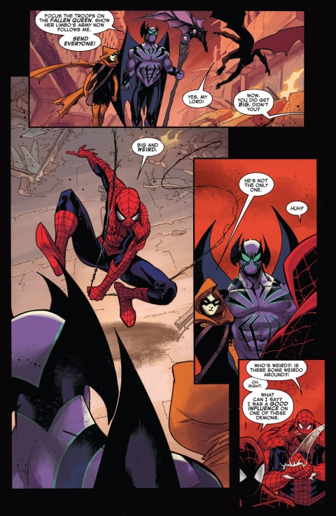 W opuszczonym Limbo bohaterowie debatują, jak powstrzymać Chasma i jego armię. Spider-Man chce sam zmierzyć się z Reillym, a Madelyne Pryor pragnie zemsty za ukradziony tron i atrybut władzy – Scythe of Sorrows. Pająk argumentuje, że nienawiść zaślepia i ogłupia Bena, co zmienia jej podejście. Ostatecznie decydują się współpracować: Spider-Man ruszy do walki u boku Rek-Rapa, a Madelyne otrzyma wsparcie X-Men (Cyclops, Marvel Girl, Iceman, Firestar, Forge, Magik, Synch, Havok) w starciu z demonami.