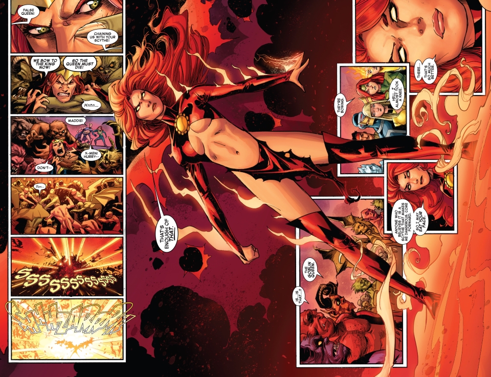 Manhattan. King Chasm i Hallow’s Eve urządzają paradę, eskortowani przez armię demonów, kiedy nagle zjawiają się superbohaterowie. X-Men mierzą się z Insidious Six, a Madelyne konfrontuje się z Benem, jasno dając do zrozumienia, że chce odzyskać swoją kosę symbolizującą władzę. Przyznaje, że popełniła błędy, ale nie żałuje sprowadzenia Bedlama – pozbawionego wspomnień Eddiego Brocka. Na jej rozkaz Bedlam z przyjemnością i brutalnie atakuje demony, które zdradziły Madelyne.