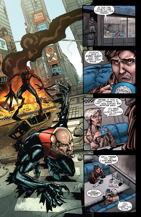 Ciocia May odpowiada, że wujek Ben byłby szczęśliwy, gdyby wiedział, że z powodu jego śmierci Peter zostanie takim bohaterem. May podpowiada mu także, aby zdradził światu swoją prawdziwą tożsamość. Następnego dnia Spider-Man odwiedza Jamesona w redakcji Daily Bugle. Proponuje mu układ – odkrycie tożsamości na wyłączność dla Bugle’a w zamian za 3 strony na swoją opowieść. Kolejnego dnia opowieść Spider-Mana ukazuje się w gazecie. MJ chwali męża za artykuł. Przez całą noc Peter nie może zasnąć.