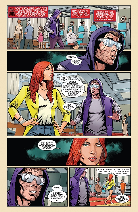 W kasynie Ben spotyka Marlo Chandler-Jones, żonę Ricka Jonesa i gospodynię talk-show. Kobieta bez problemu rozpoznaje w nim Scarlet Spidera i mówi, aby ten ruszył za nią. Wychodzą na ulicę, gdzie pokazuje Benowi ciała zastrzelonych przechodniów i skłania policjanta do relacji. Pyta Reilly’ego, czy zamierza odnaleźć zabójców, ten wyraża chęć, jednak ma pewne „ale”. W odpowiedzi Marlo podaje mu kierunek oraz numery rejestracyjne samochodu, jakim poruszają się strzelcy. Ben zamierza ruszyć ich śladem.