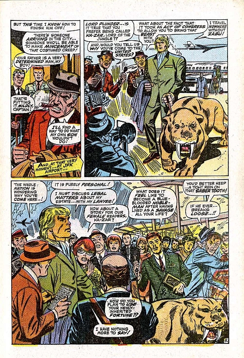 Do Nowego Yorku przylatuje Lord Plunder aka Ka-Zar ze swoim zwierzęciem Zabu. „Lord Dżungli” zdradza dziennikarzom, że przyjechał do miasta, aby załatwić formalności związane z odziedziczonym majątkiem. W wynajętym pokoju odwiedza go Jonah Jameson. Grając na ambicji Ka-Zara, rozbudza w nim nienawiść do Spider-Mana i proponuje sowitą zapłatę ($10 000) za jego schwytanie. W tym samym czasie Harry Osborn znajduje w pokoju Petera pajęczy-znacznik. Chłopak wysuwa przypuszczenie, że jego kolega został porwany przez Spider-Mana. O swoim odkryciu młody Osborn powiadamia media.