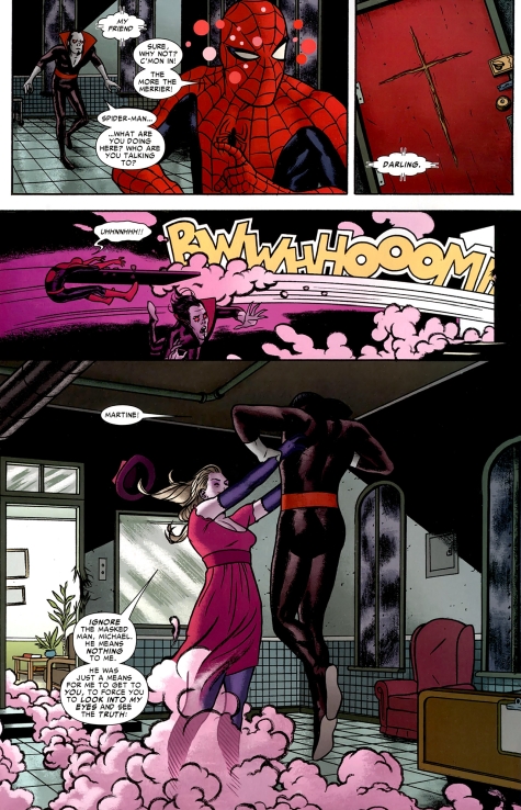 Następnego dnia Spider-Man udaje się do kryjówki Morbiusa. W chwili, gdy przedostaje się do środka, drzwi wybuchają. Kobieta z klubu, która podała mu adres, wchodzi do pomieszczenia i chwyta Morbiusa, który rozpoznaje w niej swoją dawną narzeczoną, Martine. Pragnie ona połączyć się z Morbiusem, zmieniając go w prawdziwego wampira, jakim sama jest. Michael zgadza się na to, gdy Martine zaczyna grozić, że podobny los spotka Spider-Mana. Wyrzucony zza okno Pająk chwyta kołek, jednak waha się z zabiciem Martine. Morbius, zajmując jej uwagę uczuciowymi deklaracjami, nabija ją na kołek trzymany przez Spider-Mana.
