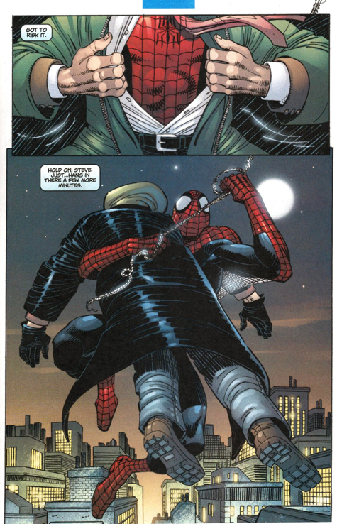 Spider-Man zjawia się z umierającym na rękach chłopakiem, gdzie natrafia na kolejną przeszkodę. Lekarzy i pielęgniarki. Dowiaduje się, że są także inni oczekujący i nie mają czasu zająć się ćpunem, który przedawkował. Peterowi puszczają nerwy i wymusza na lekarzu natychmiastową interwencję. Chwilę później rozmawia przez telefon z Jennifer i obiecuje, że jej nie wyda pod warunkiem kontaktu z nim w razie wszelkich problemów. Odchodzącą od telefonu dziewczynkę obserwuje dwójka znajomych Steve’a, stwierdzają, że w jej sprawie powiadomią człowieka imieniem Shade.