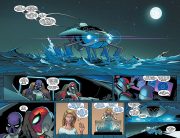 Czytelnikowi zostaje zaprezentowana kolejna „zabawka” z arsenału majętnego Petera Parkera. Był już Spider-Mobile, teraz przychodzi czas na Hydro-Spidera, czyli podwodny pojazd, jaki zostaje wykorzystany do zlokalizowania jednej z baz Zodiaca. Skoro już mowa o tej organizacji, to w tym komiksie mamy okazję bliżej przyjrzeć się jej liderom. Nie będę udawał, że to jacyś fenomenalni adwersarze, którzy zaskakują oryginalnością czy innowacyjnością. Wzbudzają jednak zainteresowanie, ponieważ nadal nie wiadomo, czemu tak zaciekle atakują Parker Industries, co planują i jaki jest ich ostateczny cel.